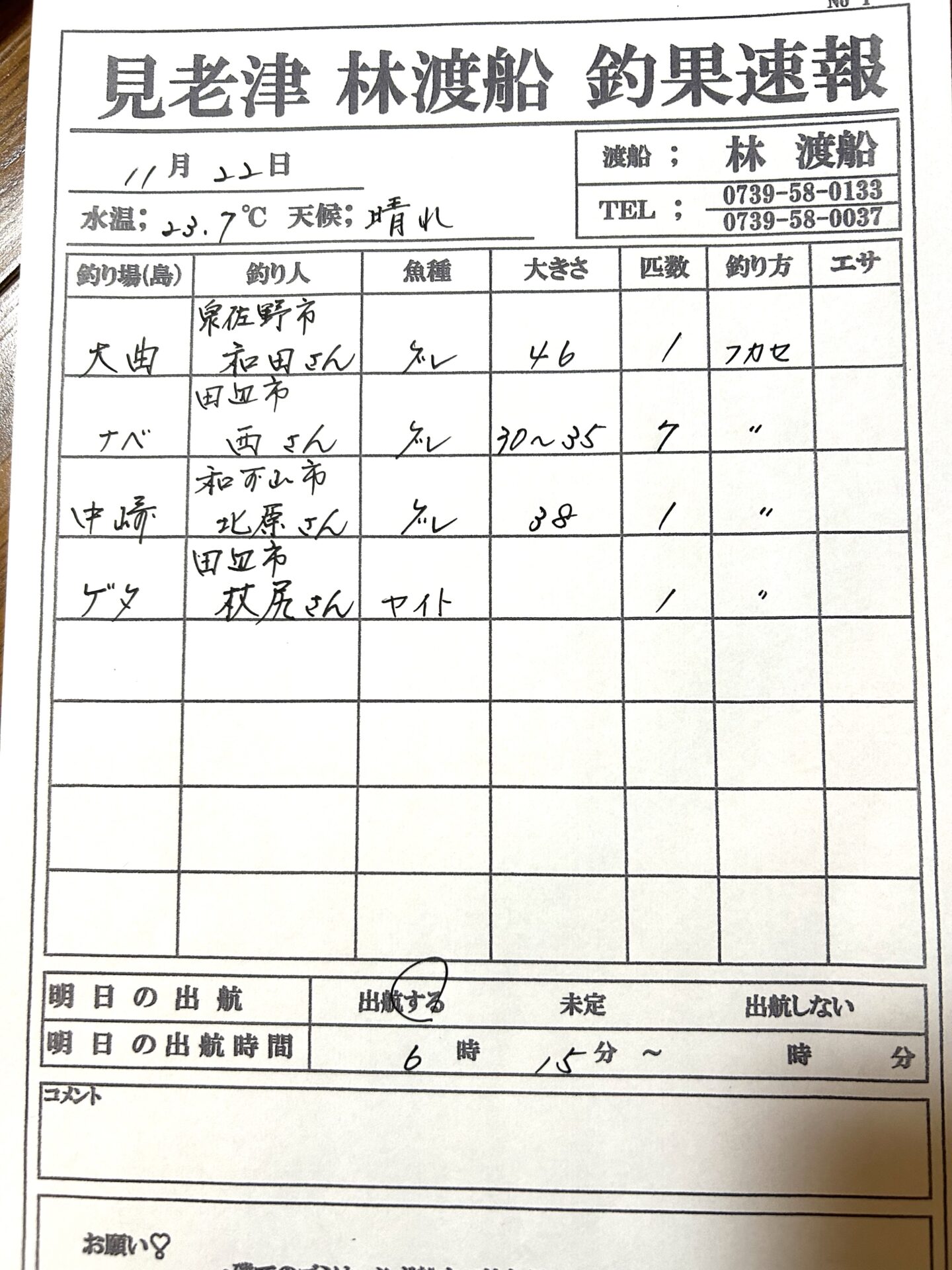 11/22(土) 今日の釣果🐡 2025 11/22 釣果情報 釣果情報 11/20(木) 今日の釣果🐟 11/23(日) 今日の釣果🐡 その他の釣果情報 11/23(日) 今日の釣果🐡 2025年11月23日 11/20(木) 今日の釣果🐟 2025年11月20日 11/16(日) 今日の釣果🐟 2025年11月16日 11/15(土) 今日の釣果🐙 2025年11月15日 11/8(土) 今日の釣果🐡 2025年11月8日 11/7(金) 今日の釣果🐙 2025年11月7日 11/4(火) 今日の釣果🐡 2025年11月4日 11/3(月) 今日の釣果🐟 2025年11月3日
