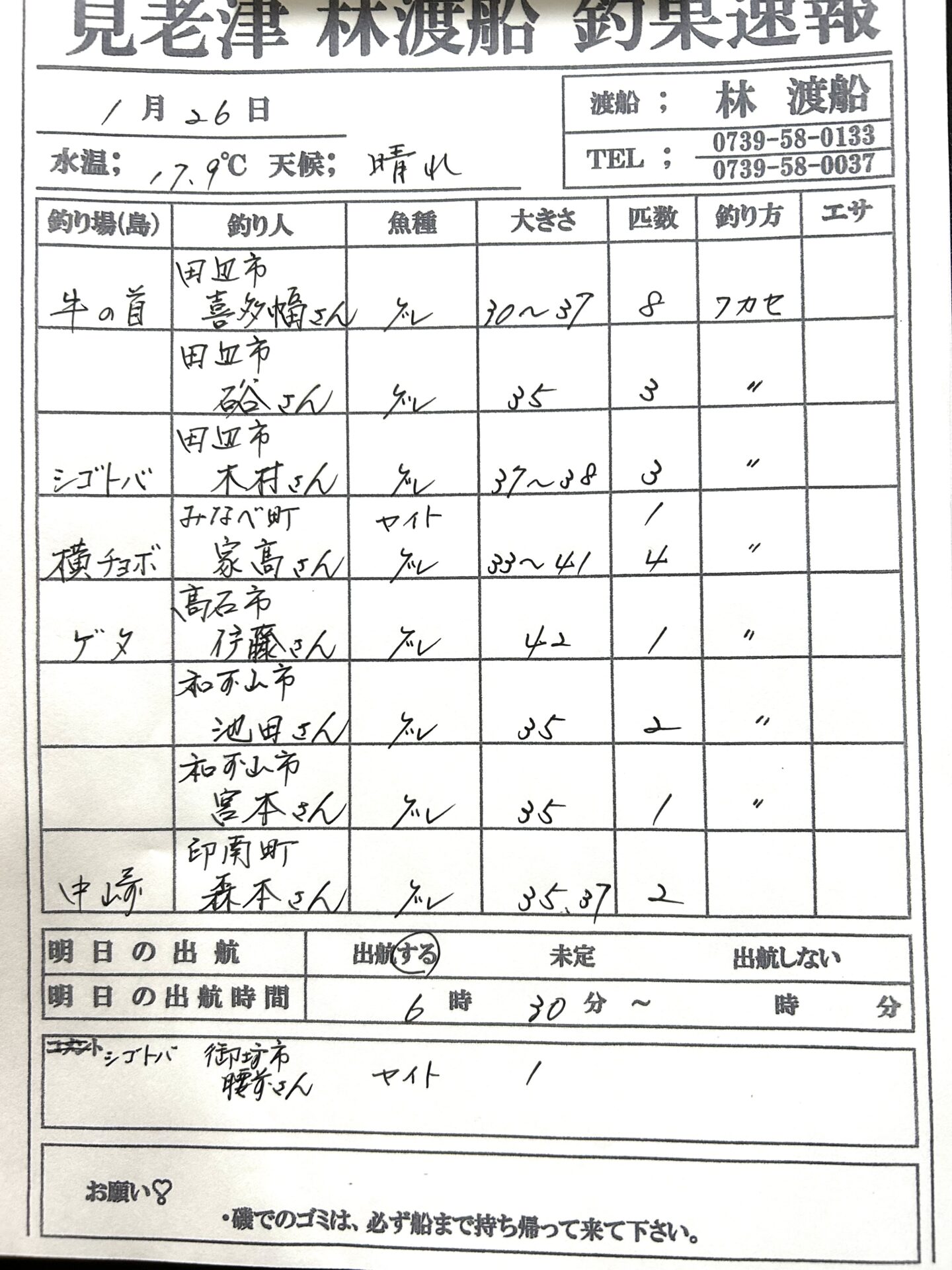 1/26(月) 今日の釣果🎣 2026 1/26 釣果情報 釣果情報 1/24(土) 今日の釣果🎣 その他の釣果情報 1/24(土) 今日の釣果🎣 2026年1月24日 1/23(金) 今日の釣果🎣 2026年1月23日 1/21(水) 今日の釣果🎣 2026年1月21日 1/20(火) 今日の釣果🎣 2026年1月20日 1/19(月) 今日の釣果🎣 2026年1月19日 1/18(日) 今日の釣果🎣 2026年1月18日 1/17(土) 今日の釣果🎣 2026年1月17日 1/16(金) 今日の釣果🎣 2026年1月16日
