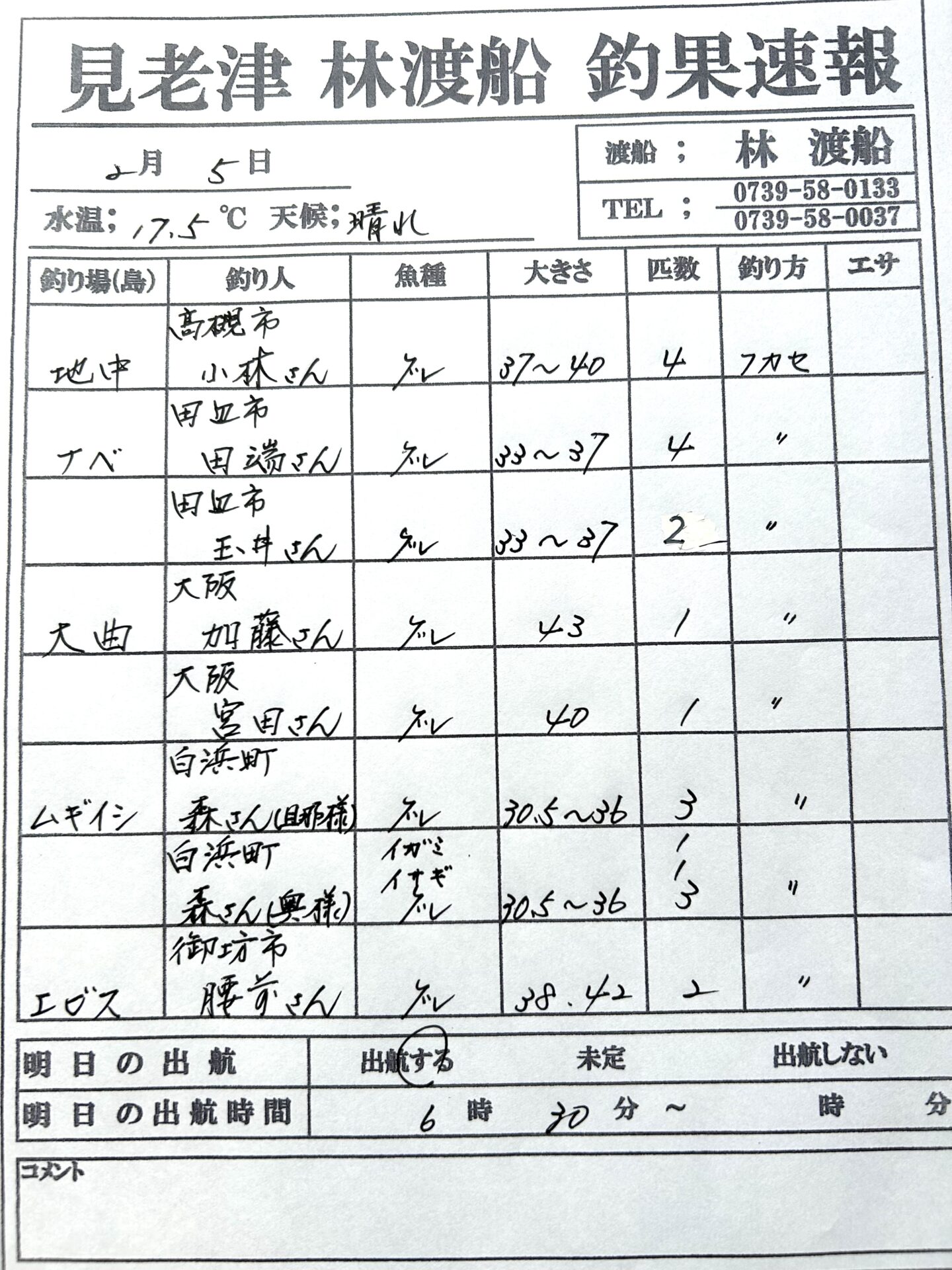 2/5(木) 今日の釣果🎣 2026 2/05 釣果情報 釣果情報 2/4(水) 今日の釣果🎣 その他の釣果情報 2/4(水) 今日の釣果🎣 2026年2月4日 2/3(火) 今日の釣果🎣 2026年2月3日 2/2(月) 今日の釣果🎣 2026年2月2日 1/31(土) 今日の釣果🎣 2026年1月31日 1/29 今日の釣果🎣 2026年1月29日 1/28(水) 今日の釣果🎣 2026年1月28日 1/27(火) 今日の釣果🎣 2026年1月27日 1/26(月) 今日の釣果🎣 2026年1月26日